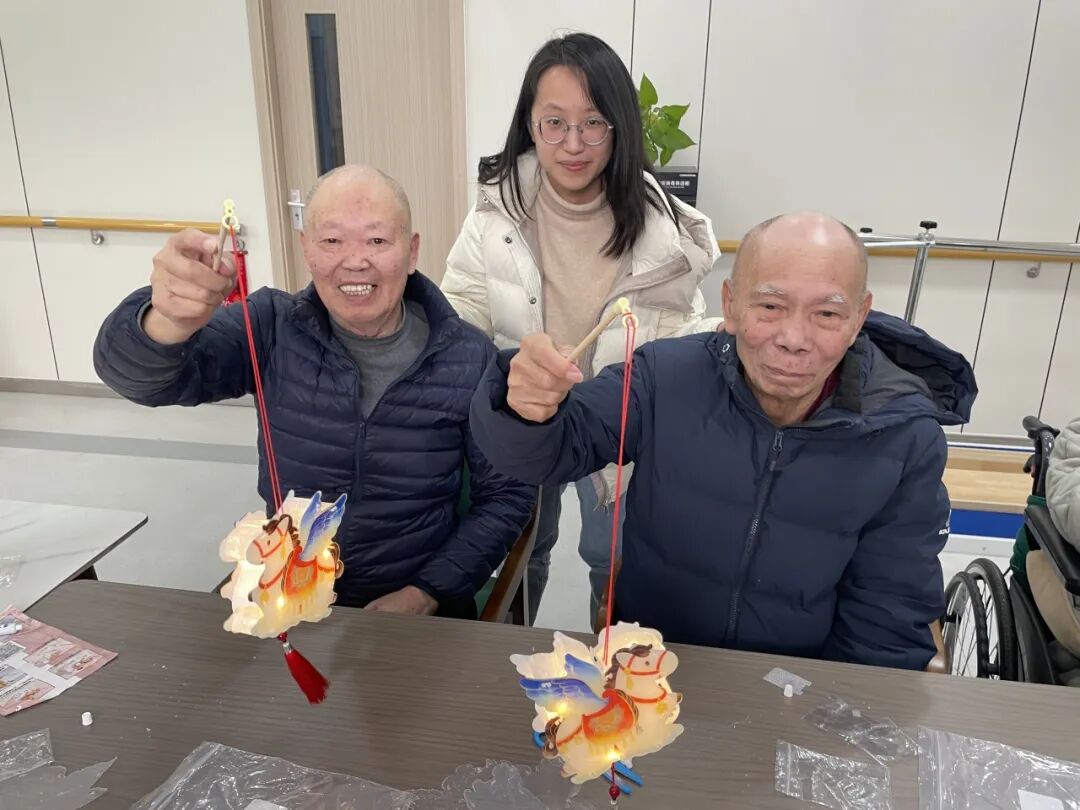 经过大家的一番努力,一盏盏明亮通透、色彩鲜艳的花灯被制作了出来。老人们看着自己亲手制作的花灯,脸上洋溢着自豪和满足的笑容。这些花灯不仅照亮了护理院的每个角落,更温暖了每一位老人的心。