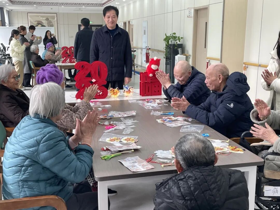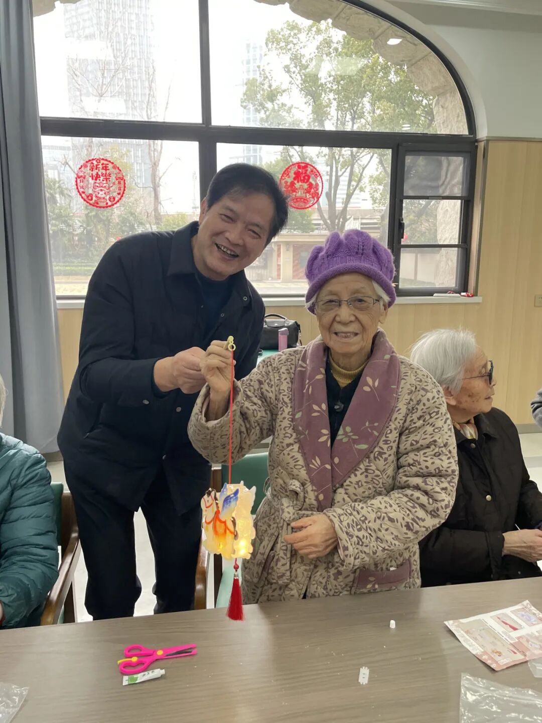 活动开始前,上海洪岁护理院院长顾联斌为院内老人送上节日祝福:“各位长辈,值此元宵佳节!祝愿大家往后生活圆圆满满,祝大家身体健康、万事如意!希望这次活动给大家带来开心,咱们一起热热闹闹过元宵!”顾院长的真挚祝福赢得老人们阵阵掌声,花灯制作活动随即正式拉开帷幕。