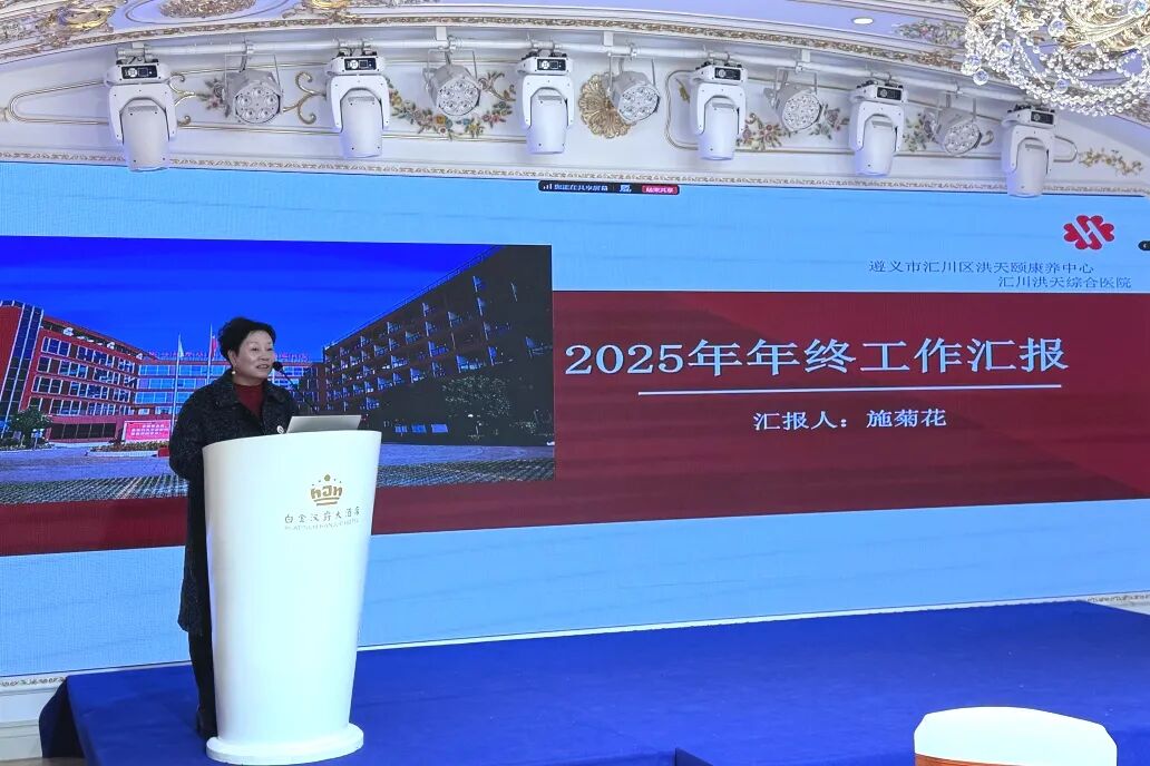 遵义洪天汇川养老中心院长施菊花做工作汇报