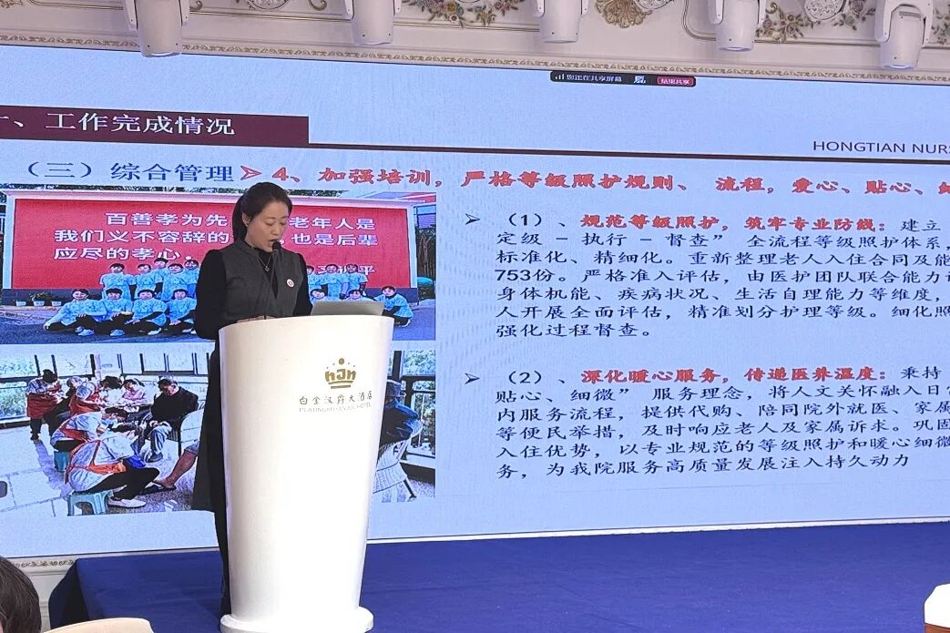 上海洪天护理院副院长奚鹤一做工作汇报