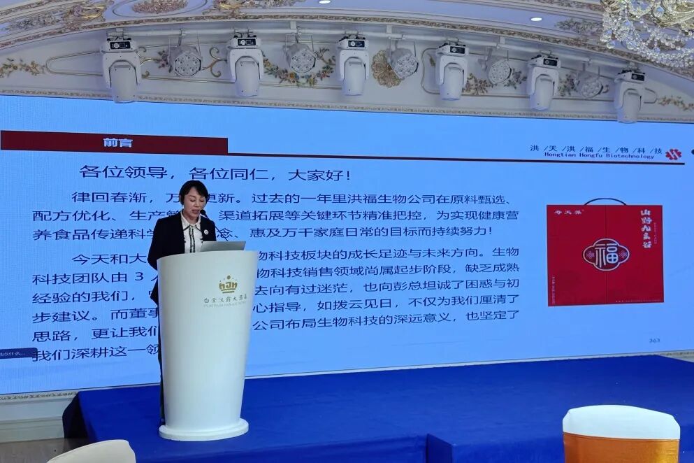 洪天洪福生物科技总经理孙巧莉做年终工作总结