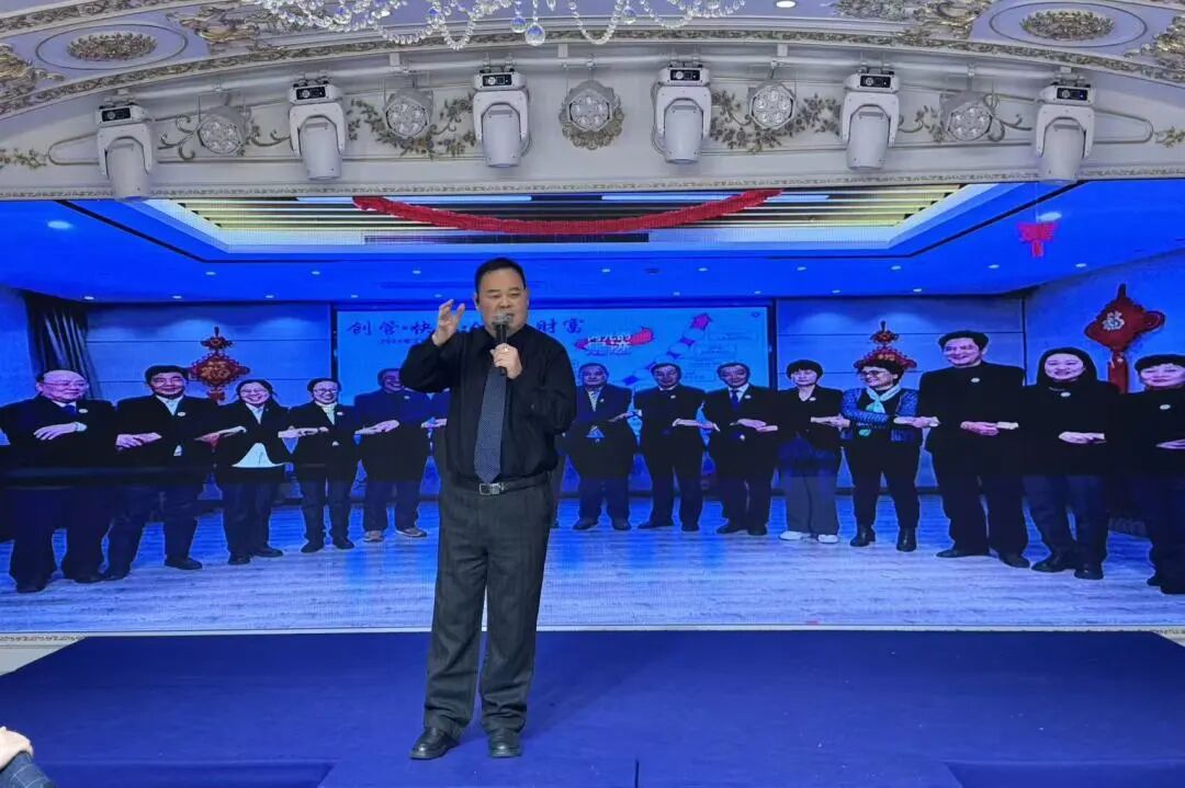 最后,彭总深情演唱一曲《洪天故事》。他站在舞台中央,以沉稳而真挚的嗓音,将企业的发展历程与同仁的奋斗岁月娓娓唱来。歌声在厅内回荡,充满了回忆与希冀,深深打动了在场的每一位听众。